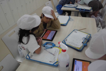 三ケ日みかん選果場では、AIを使ったり、ロボットを使ったりして、効率的に仕分けが行われている様子を見学したり、タブレットで三ケ日みかんのクイズにチャレンジしたりしました。子供たちは日本最大級の選果場を見学し、その速さに驚いていました。