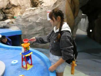 東京都水の科学館では、水のことをたくさん学ぶことができました。水が入った入れ物を真空にすると水はどうなるのかという実験を見たり、水の循環についてのアニメーションを見たりしました。