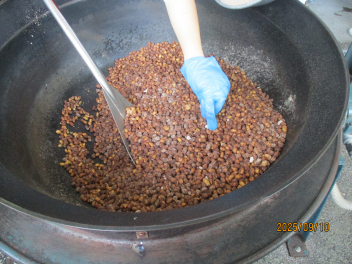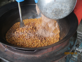 今日は、揚げた大豆にココア・きなこ・砂糖をまぶして「ココア豆」を作りました。laughココアだけでなく、大豆やきなこにも