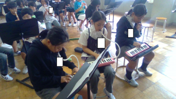 合奏の担当楽器が決まり、一生懸命自分の楽器の練習をしています。