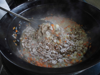 きのこには、たくさんの種類があります。給食で使われているものには、しいたけ・えのきたけ・マッシュルーム・まいたけ・ぶなしめじ・エリンギなどがあります。きのこは、おなかの調子を整える食物繊維や、カルシウムの吸収を助けるビタミンDなどの栄養を多く含んでいます。今日のきのこクリームスープには、マッシュルームとぶなしめじが入っていました。sad