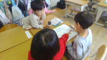 4年生のあるクラスでは、習字で平仮名を書いていました。字形に気を付けて丁寧に仕上げていました。片付けもきれいにしていました。
