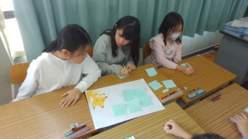 • 12月のにこにこ音楽集会に向けて、1年生も実行委員会を開き、活動を始めましたsad