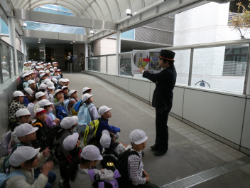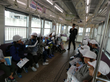 電車内では、駅員さんより、電車の種類や仕事の様子、マナーについてのお話を伺いました。