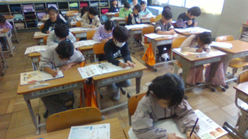4年生の総合学習で、浜松ろうあ協会の笠原さんと浜松市社会福祉課の吉原さんをゲストティーチャーにお招きして、手話講座を行いました。