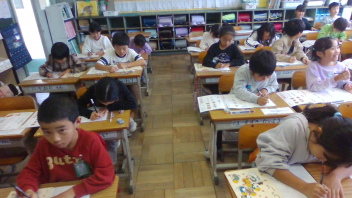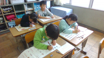 今日は「字の中心を見つけながら書く」ことを、めあてに頑張りました。
