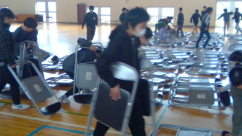 ケガには気を付けるように声を掛けながらでしたが、イスを4つ運ぶ子もいて、一生懸命片付けをする姿に力強さや頼もしさを感じました。