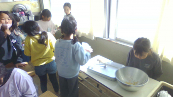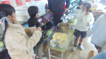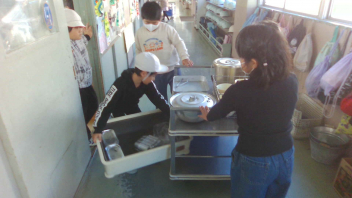 あるクラスではボランティアの子たちが、とても上手にアルミ米飯の片付けをしていましたよ。