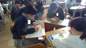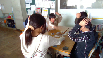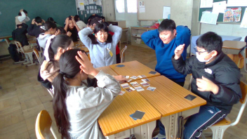 ALTの先生が、カードにまとめてくれたので、カルタ大会のようにして、単語当てゲームを行いました。