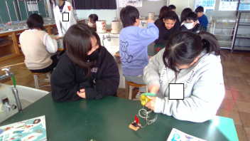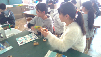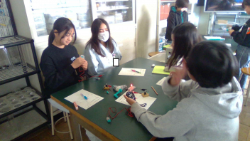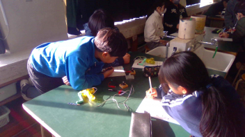 回す速さによって、豆電球の光加減やモーターの回る速さが変化することも感じることができましたね。