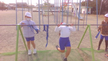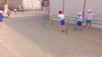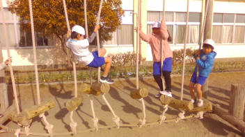 鬼ごっこやドッジボール、遊具遊びに縄跳び、鉄棒と、工夫して遊んでいます。友達と仲良く遊ぶと、寒さも吹き飛ぶねwink