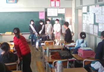 •  全校にあいさつの輪を広めるという目的で、「あいさつたすきリレー」をしました。今週は、4年生の担当でした。各クラスごとに、あいさつたすきをして、学校を周ってあいさつをしました。