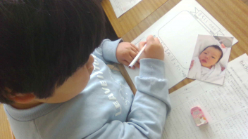 • 生活科の学習「大きくなったよ」で、赤ちゃんの時からの自分の成長を振り返る学習をしています。