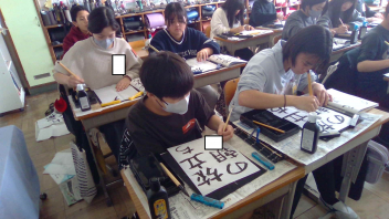 毎回見直しをして、次はどこを直して上手に書こうかと自問自答しながら、毛筆に集中して取り組みました。