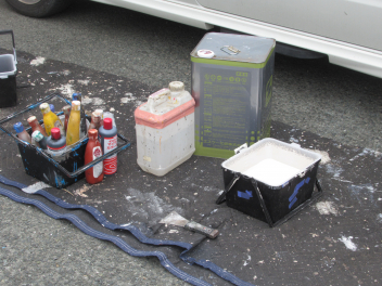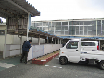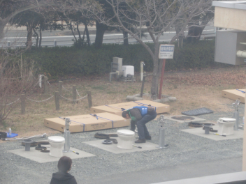 駐車場や体育館で作業をされている方がいらっしゃいました。