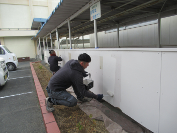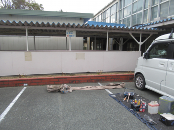 汚れていた体育館への渡り廊下の壁を、ペンキできれいに塗ってくださるとのこと