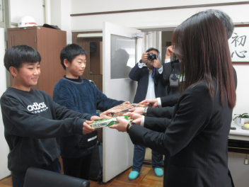 •  2月26日に3年の総合の総まとめとして、2年生に篠原の自慢を発表しました。子供たちは緊張しながらも頑張ってはっぴょうしていました。