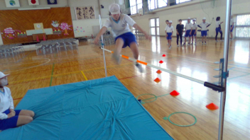• 6年生最後の体育の学習は、「走り高跳び」です。