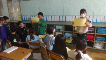 友達に伝えるためには、大きな声で、はきはきゆっくりと、前を向いて言うことが大切です。友達同士で発表の仕方を確認しながら本番に臨みました。さすが、はなまるキング2年生cheekyみんな上手に発表できましたね