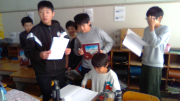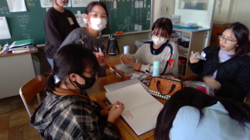 学校内で友達に書いてもらう時間が少しだけ取れたので、そちらの様子です。