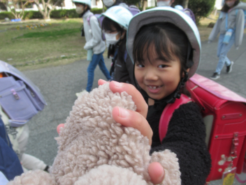毎朝、一緒に歌ってくれる子もいますモフモフの手袋、上着があたたかそう。