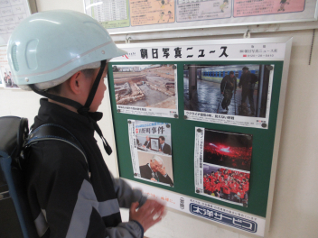児童昇降口を通ったしのささっ子の中で、ニュースを興味深く読む子がいました。
