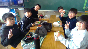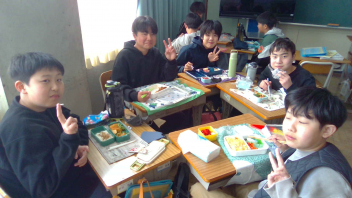 • 卒業式の総練習で5・6年生だけが学校に残る関係で、今日はお弁当の日でした。