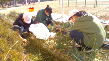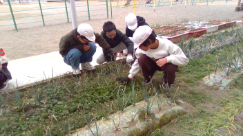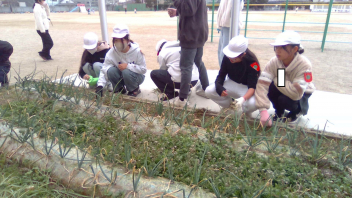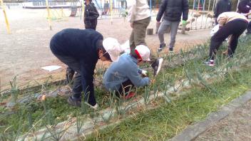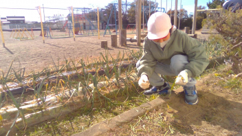 大きくて、おいしい玉ねぎを収穫するために、草取りを行いました。