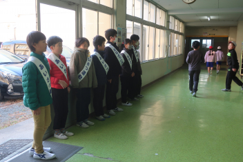 • 篠原小学校が挨拶でいっぱいの学校になるように、今日から各クラス順番に挨拶運動が始まりました!