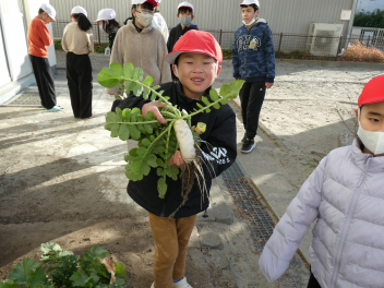 • 今日は生単の時間にみんなで育てた大根を収穫しました!!