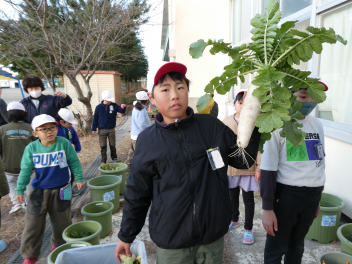 それぞれの子供が選んで持って帰った大根をぜひ調理して、楽しい話をしながらおいしくいただいてください