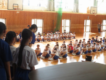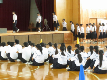 実行委員の司会で、本番を意識しながら入場や立ち位置を確かめながら、3学級が順番に舞台に立ちました。