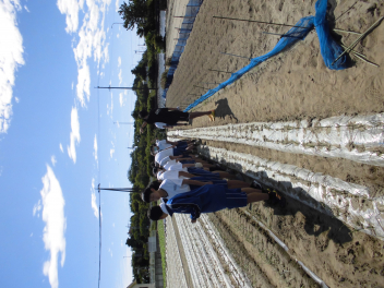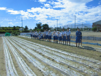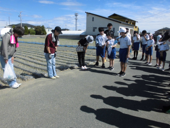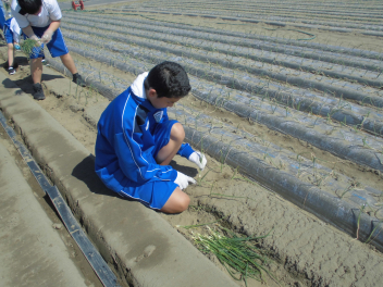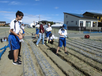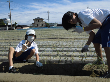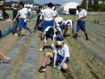 • 56789組は、篠原町にある玉ねぎ畑へ行き、玉ねぎの植え付け体験を行いました。