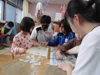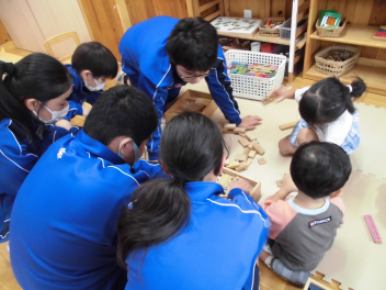 最初はかかわり方がわからず戸惑う部分もありましたが、1時間したころには、それぞれの方法で園児とかかわることができました。