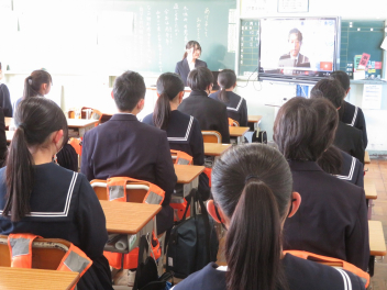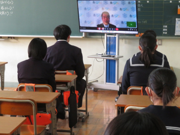 校長先生からは、励ましと期待の言葉が送られ、各教室の生徒達は背筋を伸ばして聴いていました。