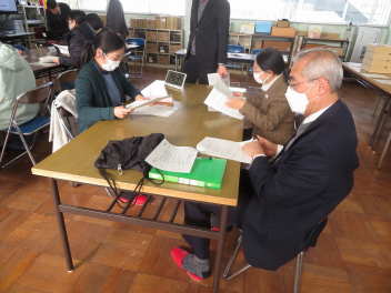 3年生は、いよいよ入試の時期を迎えました。本日は面接練習です。面接官は、コミュニティ・スクールの皆さんに担当していただきました。