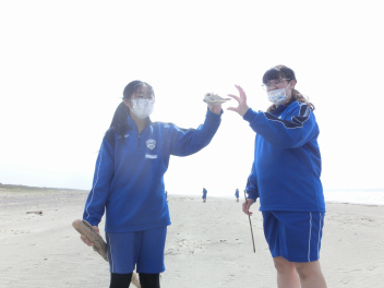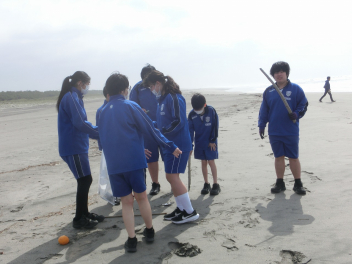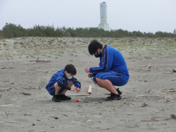 少し前ですが、56789組の3年生と、567組の1年生で、海岸清掃に行きました。
