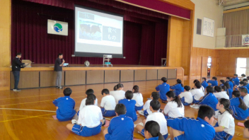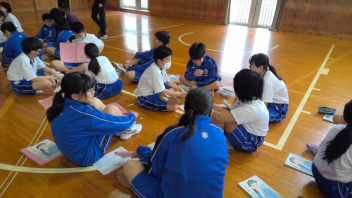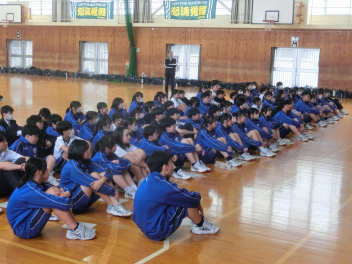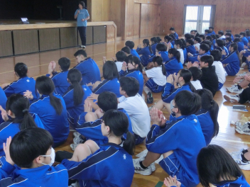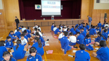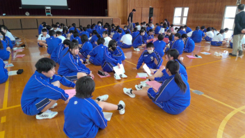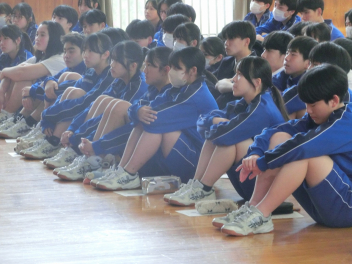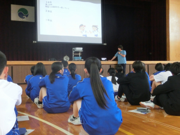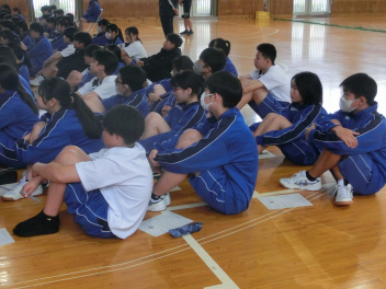 本日、1年生が体育館で初めての道徳の学習を行いました。