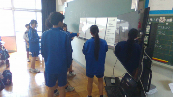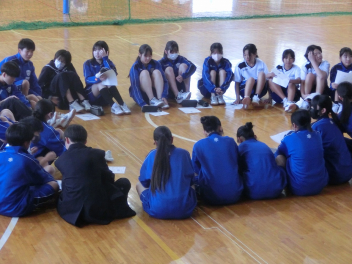 縦割集団の団長と団員が全員集まり、体育大会に向けてリーダー研修を行いました。