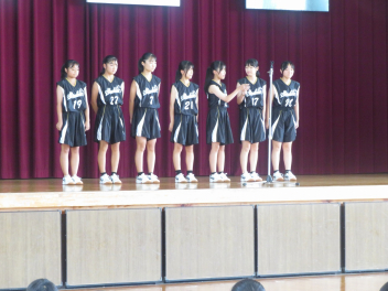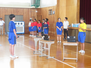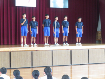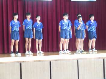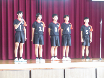2年生の新部長を中心に、大会での活躍や今後の目標を全校に向けて発信しました。