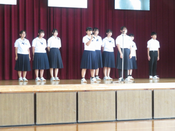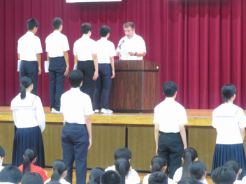 • 3年生の代表生徒が、浜松市の英語スピーチコンテストに参加しました。夏休み中の練習を通して、成長した姿を見せてくれました。この参加をきっかけに、英語に親しむ気持ちをより一層養ってくれることを願います。