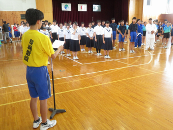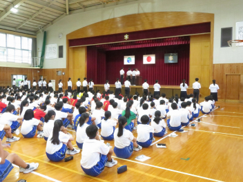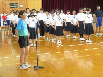 3年生が引退し、初めての中心メンバーとして試合に臨む選手もいるでしょう。今日、応援団をはじめ多くの生徒達から大きなエールを受け取りました。自信をもって、のびのびとプレーを楽しんでください。コンクールや作品作り、検定などにチャレンジする皆さんも最後まで自分の力を尽くしてください。