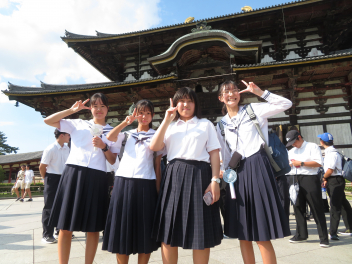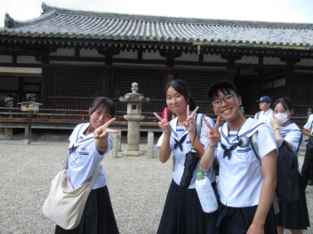 先週、3年生は修学旅行へ行ってきました。1日目は、法隆寺と奈良公園を散策しました。とても暑い中でしたが、奈良公園では多くの鹿を見て、盛り上がっていました。