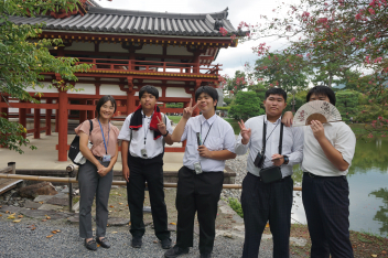 平等院鳳凰堂を訪れた際には、突然の大雨に見舞われましたが、雨にも負けない笑顔で乗り切っていました。
