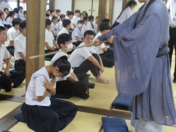 座禅体験では、警策で叩かれることを希望する人も多く、貴重な機会を楽しんでいました。