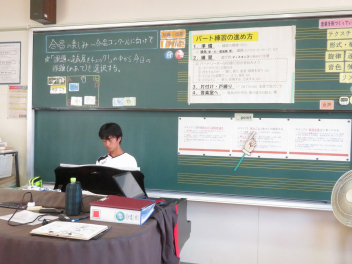 今回は、合唱コンクールに向けてパートごとに練習に取り組む授業を音楽科担当が行い、他教科の教員が参観しました。
