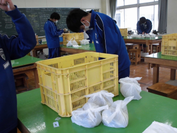 567組は、先日収穫した玉ねぎを袋詰めしました。