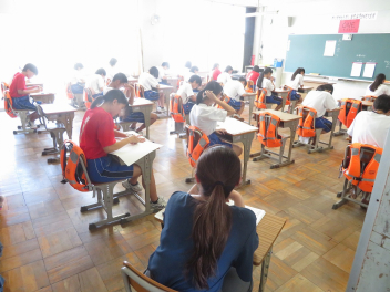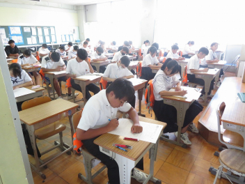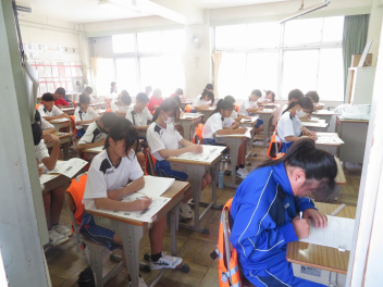 •  3年生は県の学力調査テスト、1・2年生は夏休みの友確認テストです。