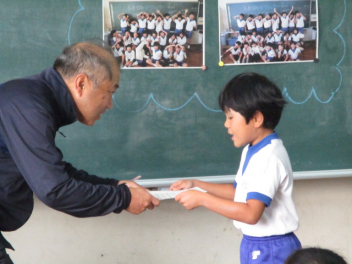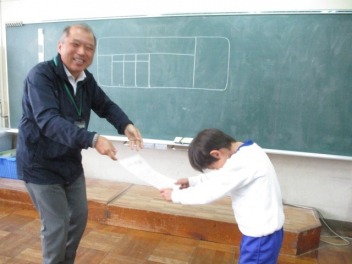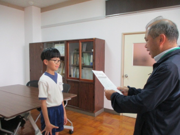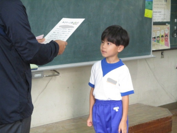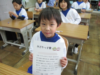 • 1年生「みどりっ子賞」の表彰がありました。自分が頑張ったことを、学級のみんなに知ってもらい、とっても嬉しそうですね。