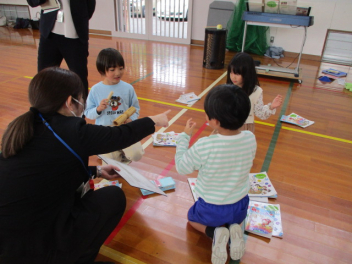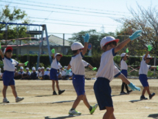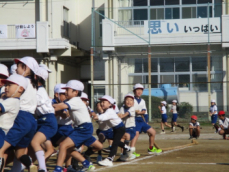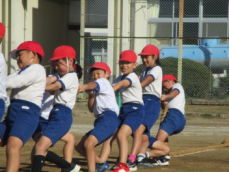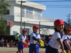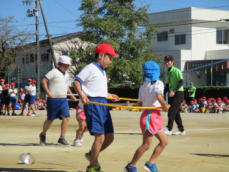 • 5・6年「三種競技~つないで、入れて、引っ張って~」、1・2年「徒競走」、3・4年「はまよさやら舞か~U・N・G~」、未就学児「フラフープでしゅっぱつしんこう!」の様子です。